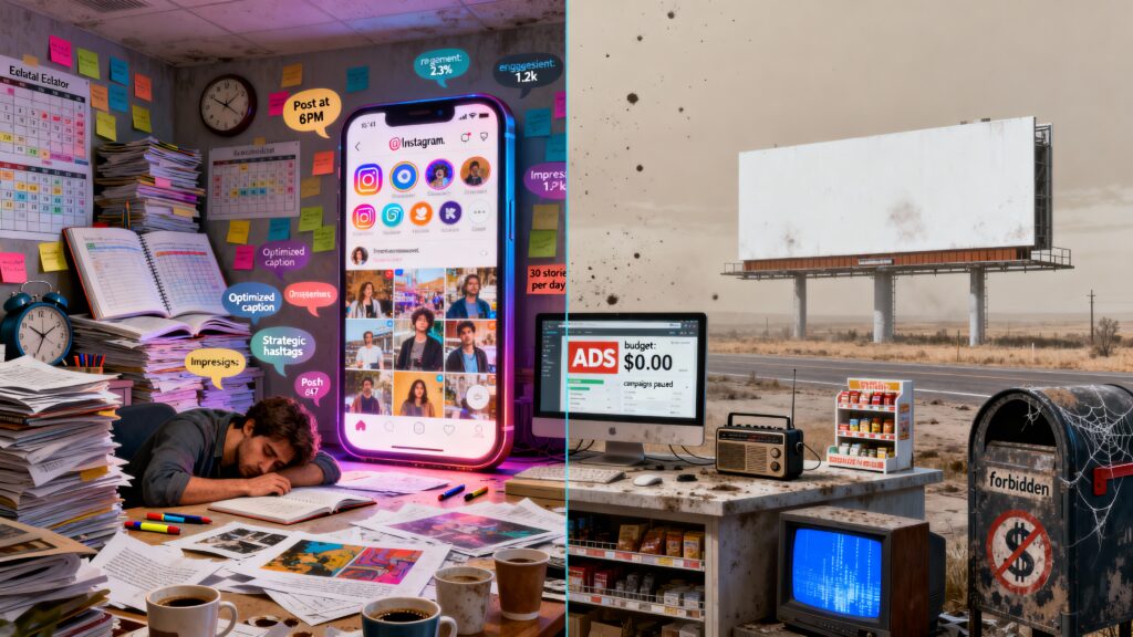 Quando a reunião semanal é só “o que vamos postar”, e nunca “como vamos estar presente onde o cliente decide”.